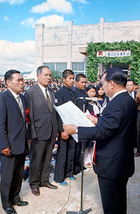 The first book donation at Ohara Junior High School, Iriomote Island, Okinawa, 3 February 1974. | Photo credit: © Seikyo Shimbun