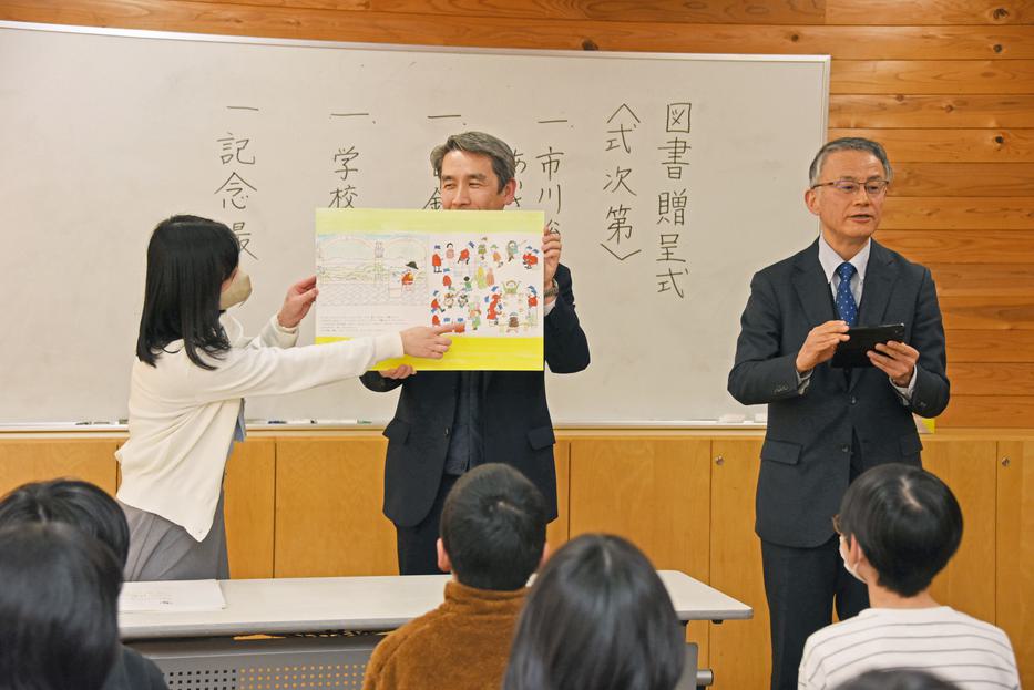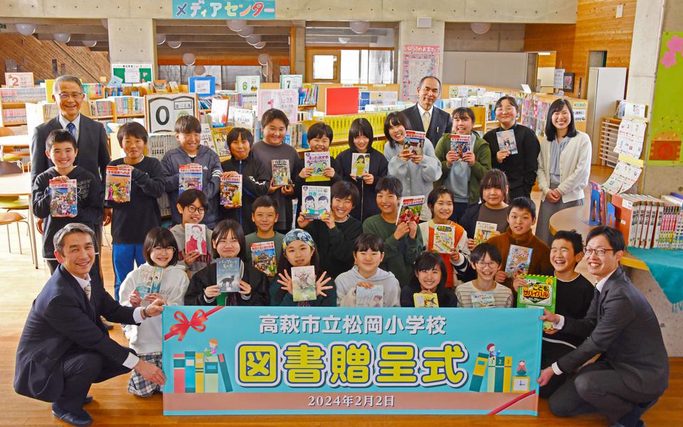 The book donation ceremony at the elementary school in Takahagi City, Ibaraki Prefecture, 2 February 2024 | Photo credit: © Seikyo Shimbun
