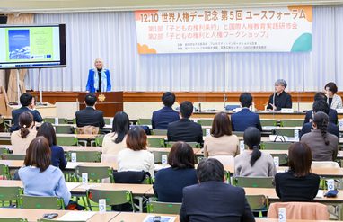 Professor Kaori Suetomi of Nihon University at the forum on children’s rights © Seikyo Shimbun