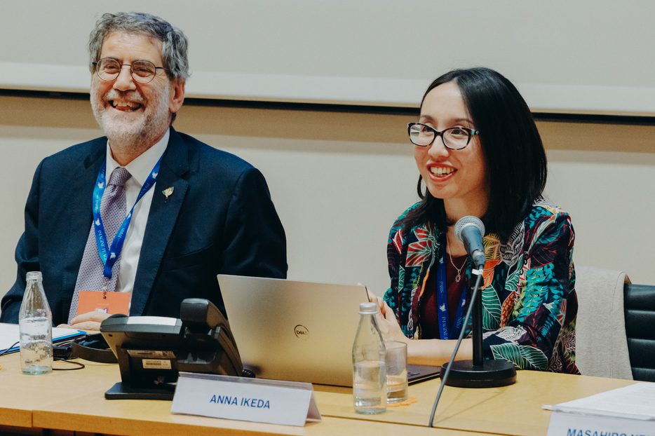On 23 September, Anna Ikeda of Soka Gakkai International’s Office for UN Affairs spoke on the forum titled “Remembering the Victims and Imagining a World without Nuclear Weapons,” moderated by Andrea Bartoli of the Sant’Egidio Foundation for Peace and Dialogue. Attendees showed great interest in the forum, as evidenced by the venue exceeding its capacity even before the event’s start time. In her presentation, Ikeda introduced a story of a Hiroshima atomic bomb survivor who impacted her and stressed the importance of remembering our human dignity when discussing the issue of nuclear weapons. She also emphasized the important role of faith communities in challenging the current security doctrine based on nuclear deterrence by quoting Austrian Ambassador Alexander Kmentt, who served as President of the First Meeting of States Parties to the Treaty on the Prohibition of Nuclear Weapons (TPNW): “If nuclear weapons are discussed only among military experts, it is almost impossible to get out of the idea of nuclear deterrence. You have to bring in the legal perspective, the moral and ethical dimension.”