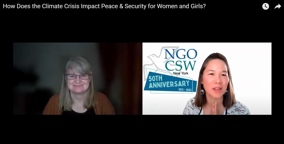 On 21 October 2021, which coincided with the annual Security Council Open Debate on the Women Peace and Security (WPS) agenda, Ivy Koek of SGI and Vice Chair of NGO CSW/NY organized and moderated “How Does the Climate Crisis Impact Peace and Security for Women and Youth?,” a virtual event attended by over 200 people. To open the meeting, Koek referenced a policy brief by the Women’s International League to Peace and Freedom, which speaks directly to the intersections of peace, climate and women: “Sustainability and peace go hand in hand. A just, fair and livable future will not be possible without a radical transformation of society and the centering of feminist values, and feminist peace into climate action is essential to the healing of our planet and the possibility of a sustainable future.”