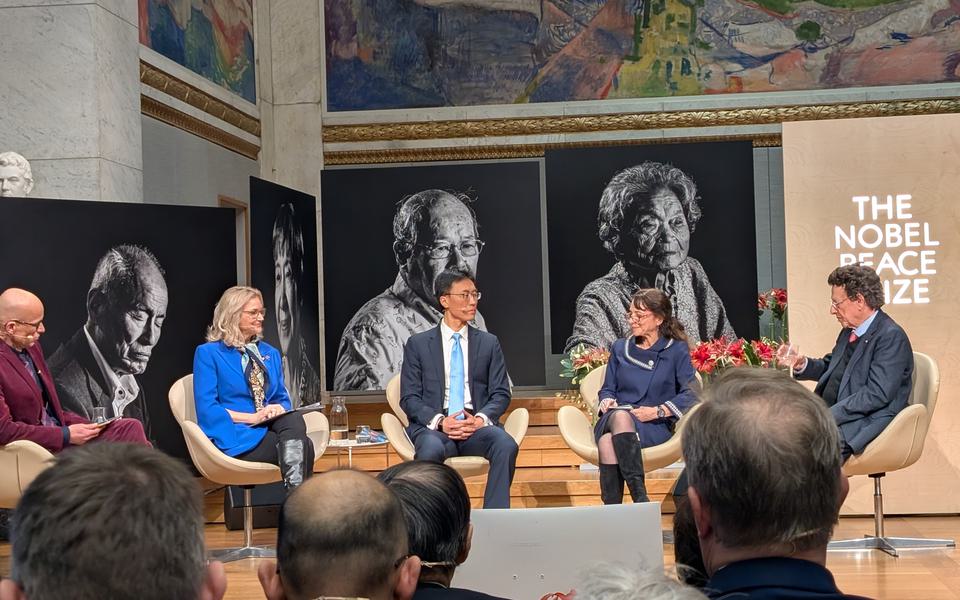 Hibakusha share their testimonies at the Nobel Peace Prize Forum in Oslo on 11 December 2024.