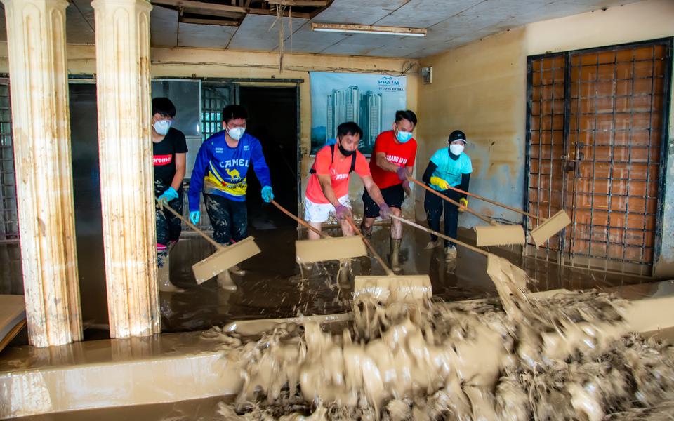 SGM also donated hundreds of sets of mattresses, blankets and pillows, as well as towels and T-shirts to temporary flood relief centers in the Hulu Langat area. The SGM Selangor branch also donated 200 mattresses and pillows to relief centers in Bukit Kemuning and Sri Muda. From 20 to 26 December, some 50 SGM members also visited different areas to help affected families clean up their houses, move damaged items and clear mud. In addition to cleaning, volunteers in Hulu Langat also helped to excavate trenches to allow water to flow, as the district’s drainage system had been covered by mud, soil and debris from the floodwaters.