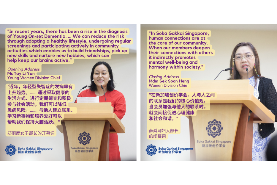 Also marking International Women’s Day on 9 March, SGS held the sixth event in its Soka Women Lecture series in collaboration with the National University of Singapore (NUS) at the SGS Headquarters. The lecture, titled “Lifestyles-based Interventions for the Prevention of Dementia,” drew 400 participants. Dr. Feng Lei, Principal Investigator and Research Assistant Professor in the Department of Psychological Medicine at the Yong Loo Lin School of Medicine at NUS, provided insights into how healthy lifestyle changes can delay the onset of dementia. This event contributed to SDG 3 on promoting good health and well-being for all ages.