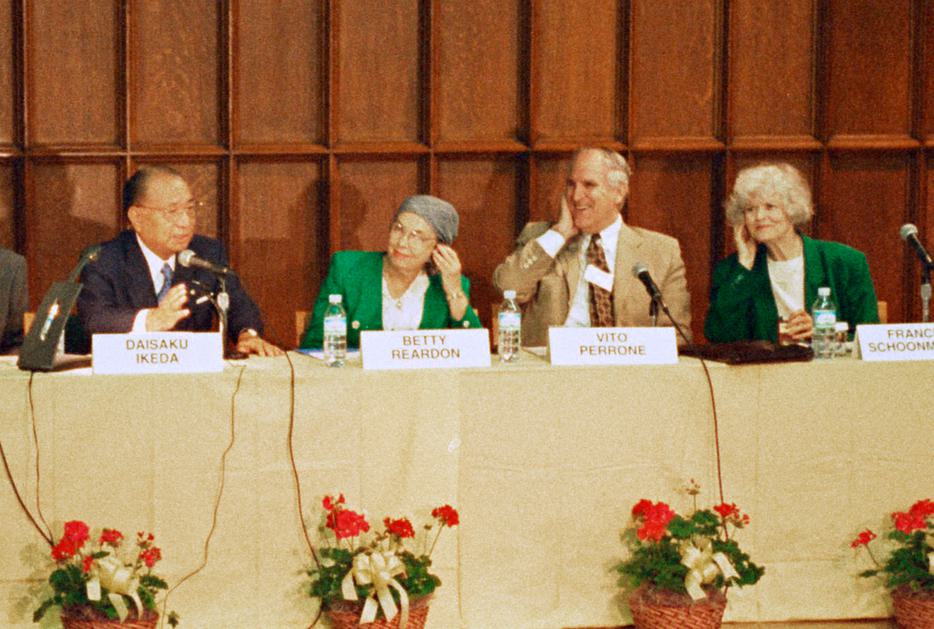 Daisaku Ikeda giving a lecture on "Thoughts on Education for Global Citizenship" at Teachers College, Columbia University, New York, 1996 © Seikyo Shimbun