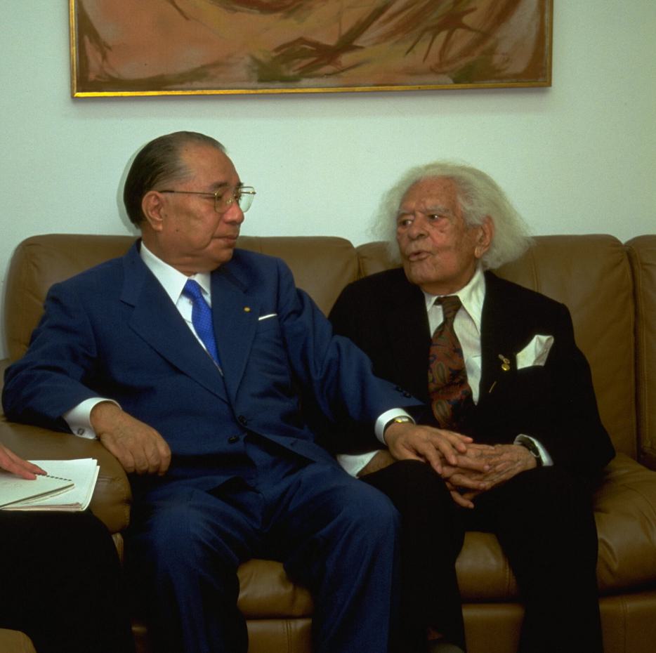 SGI President Daisaku Ikeda with Austregésilo de Athayde in Rio de Janeiro, 1993. [Photo credit: ©Seikyo Shimbun]