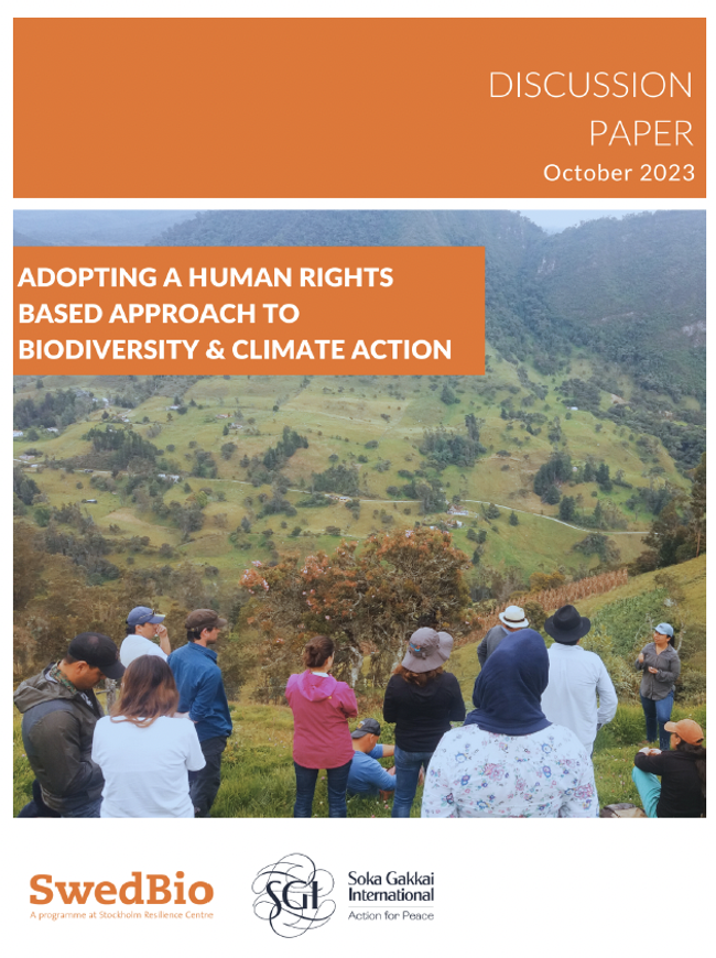 This discussion paper highlights the essential role of a human rights-based approach in addressing biodiversity and climate challenges, recognizing that these challenges have disproportionate impacts on people living in vulnerable situations. Co-authored by Ashanapuri Hertz (SwedBio), Alexandra Masako Goossens-Ishii (SGI), and Niak Sian Koh (Stockholm Resilience Centre), this paper was launched during the 25th meeting of the Subsidiary Body on Scientific, Technical and Technological Advice (SBSTTA25) of the Convention on Biological Diversity, held in October 2023 in Nairobi.