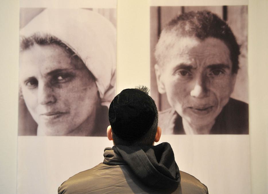 A man looks at photos from an exhibition on the Holocaust, dedicated to the 30,000 women, Jews, Romas, Catholics, Communists and other political enemies of Nazism who were deported to the Buchenwald concentration camp during WWII. [Photo credit: © AFP]