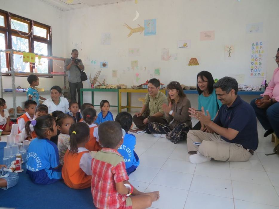 With children at an early learning center in Indonesia