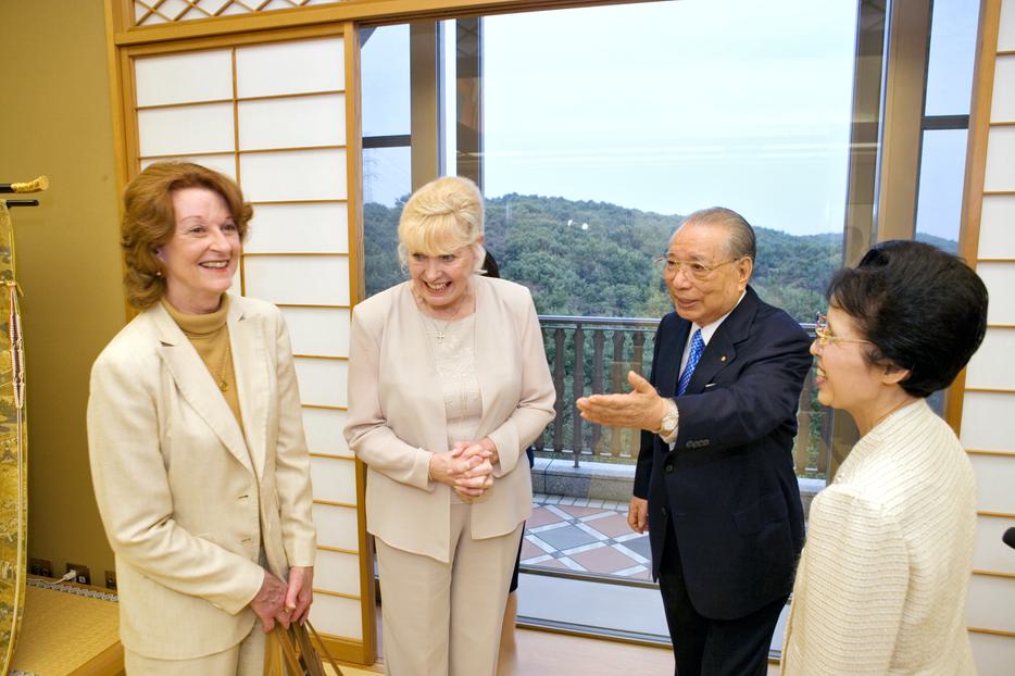 Betty Williams (second from left) and her colleague Rusti Findley with SGI President Ikeda and his wife in Tokyo, 2006 [Photo credit: © Seikyo Press]