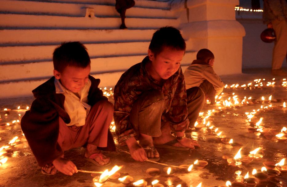 Children in Nepal light candles in a vigil for peace. [Photo credit: © Piers Benatar/Panos Pictures/Uniphoto Press]
