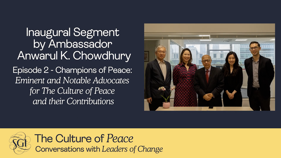 Following the 25th anniversary of the UN Declaration and Programme of Action on a Culture of Peace in 2024, SGI launched The Culture of Peace: Conversations with Leaders of Change to help build new momentum in the coming decades. This series features leaders of change including United Nations officials, experts, scholars and advocates, with a focus on women and young people at national, regional and local levels. Our aim is to raise awareness and bring attention to the power each one of us has to foster the culture of peace through our daily actions.