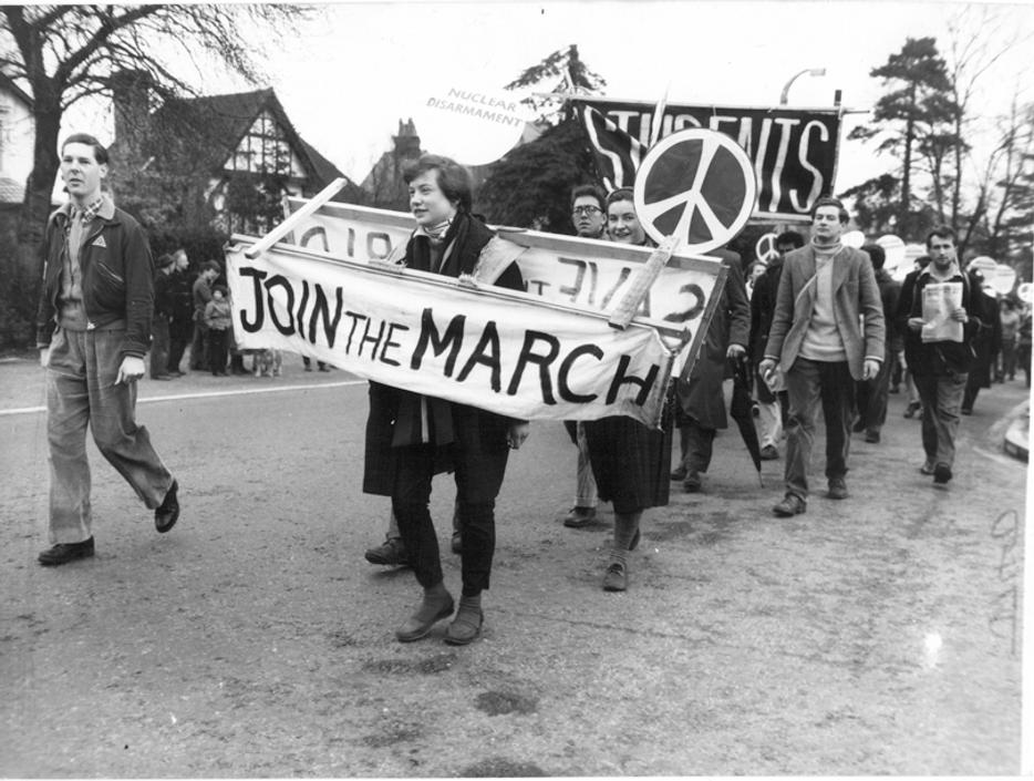 Young people marching for the Campaign for Nuclear Disarmament (CND) in the UK, 1958. [Photo credit: © CND Archives]